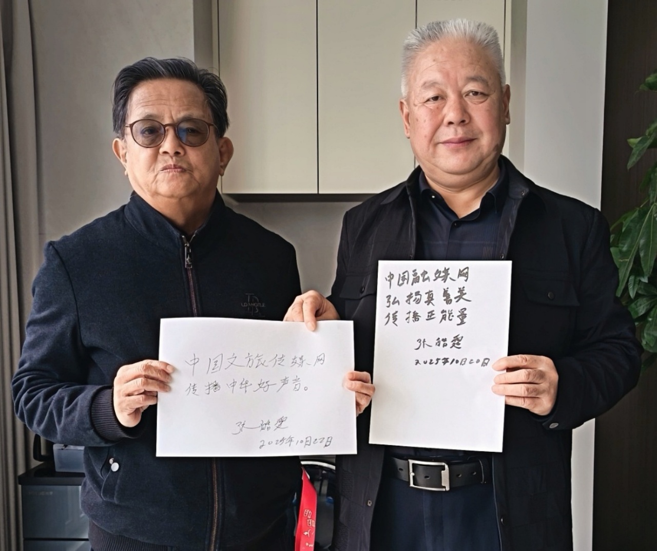 社会法制报讯 10月22日,抗日名将、享有“和平将军”美誉的张治中长孙张皓霆,在湖北省宜都市故事学会主席徐荣耀夫妇、副主席刘涛夫妇的陪同下,专程前往湖北省宜昌市长阳土家族自治县龙舟坪镇,拜访《中国文旅传媒》副总编辑胡振栋。在这场充满敬意的会面中,张皓霆不仅深情追忆先辈抗战历程与“9・3”阅兵观礼的激荡心境,更欣然为《中国文旅传媒网》与《中国融媒网》题词,以笔墨传递对主流媒体的殷切期许。