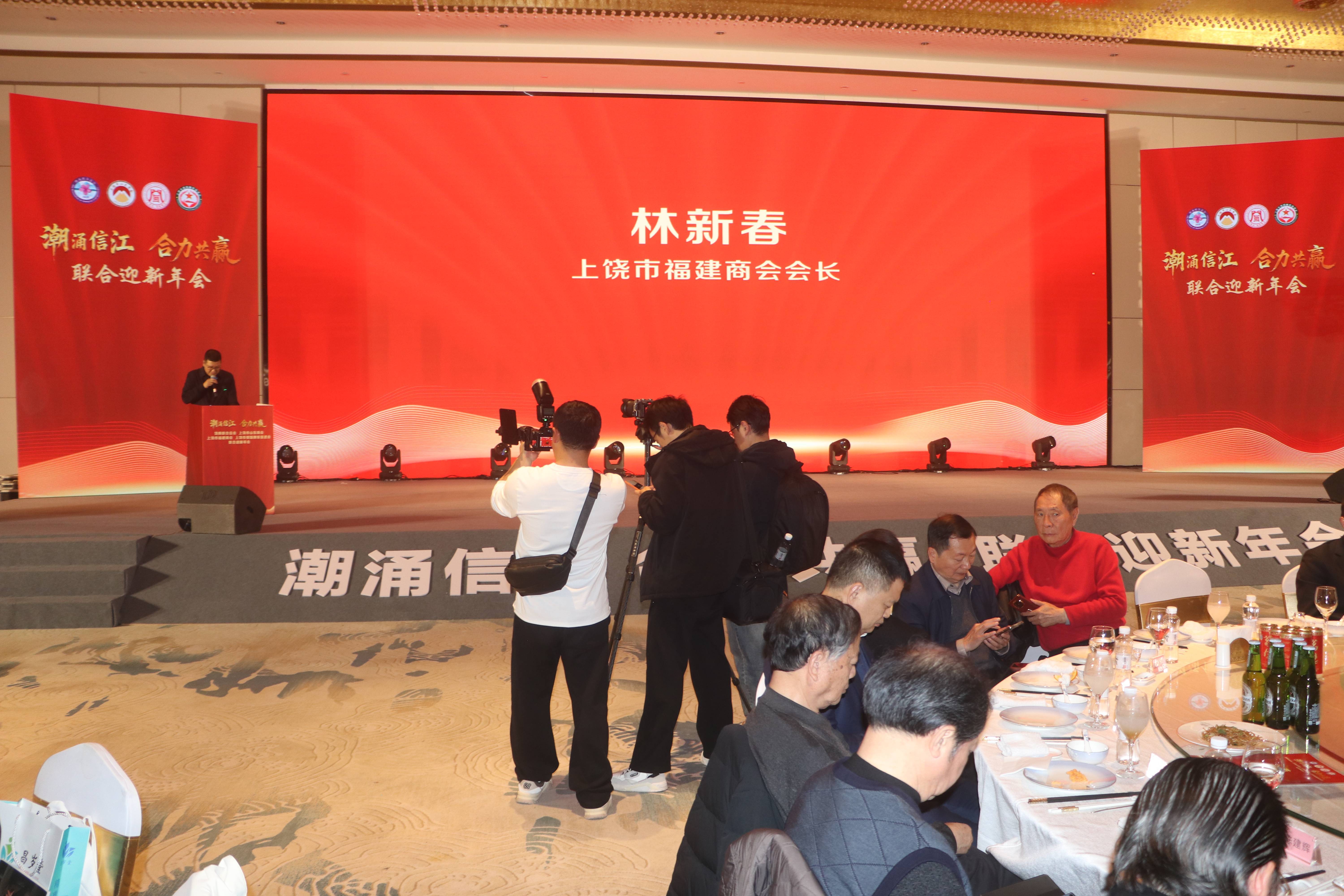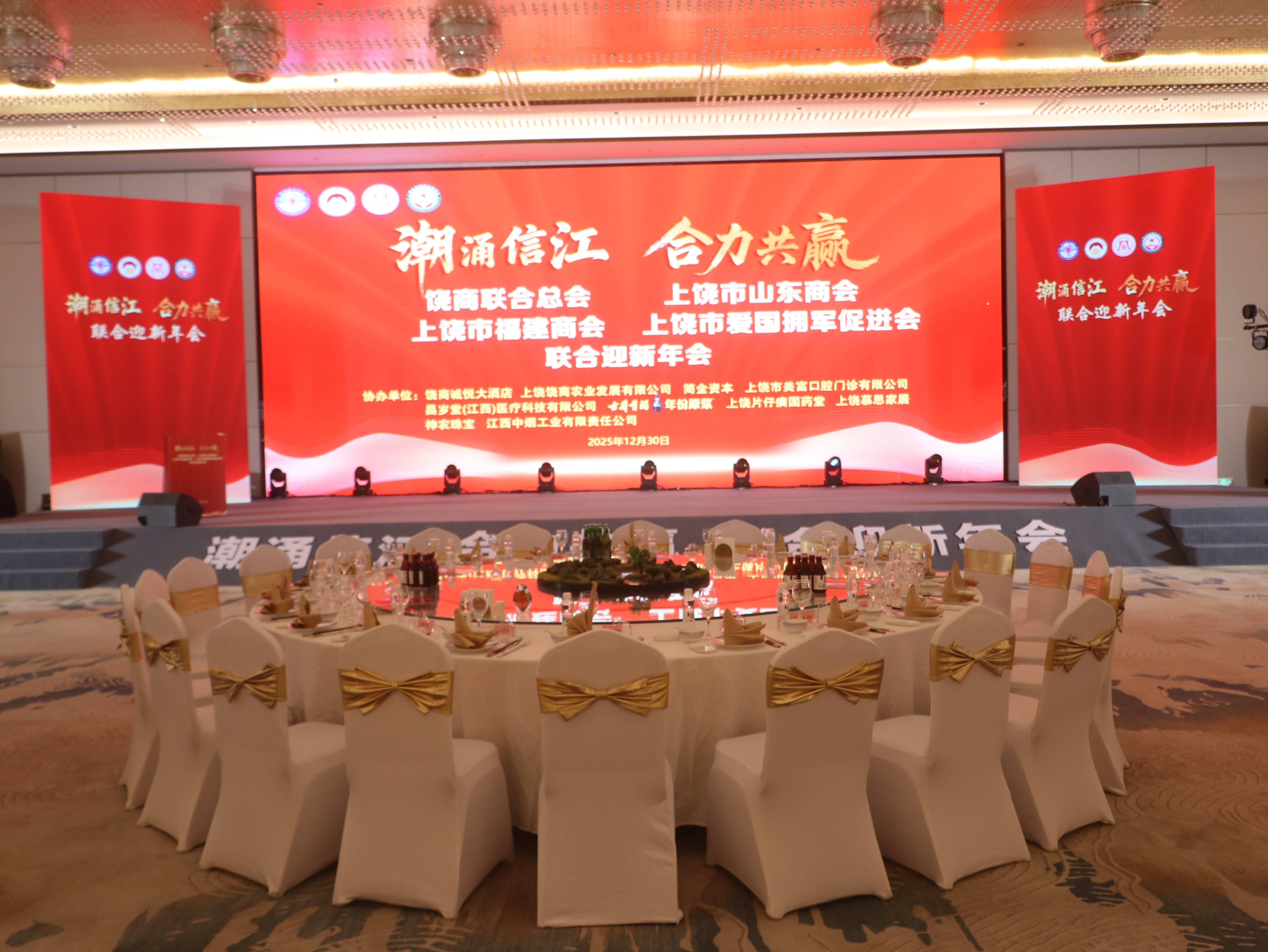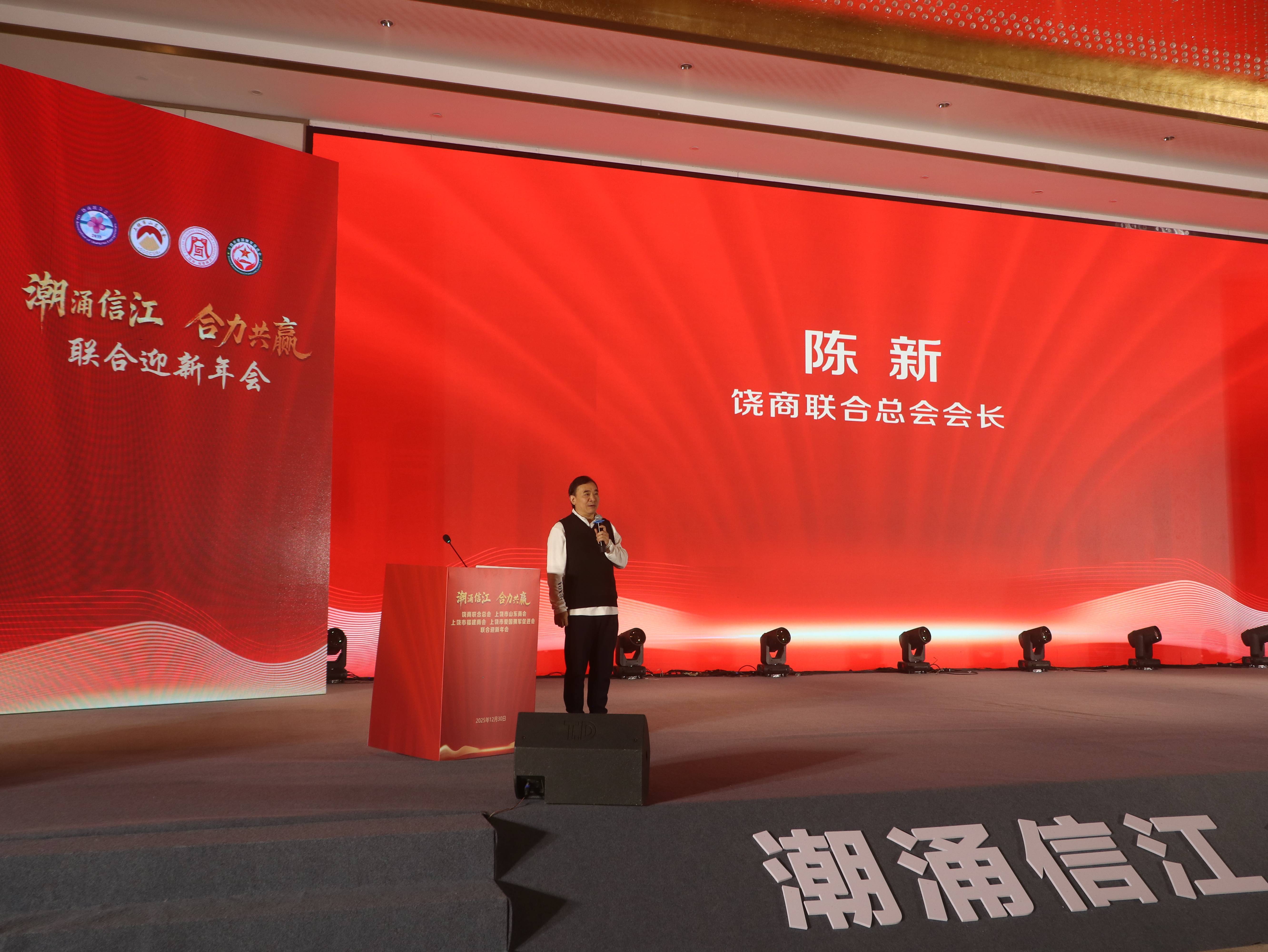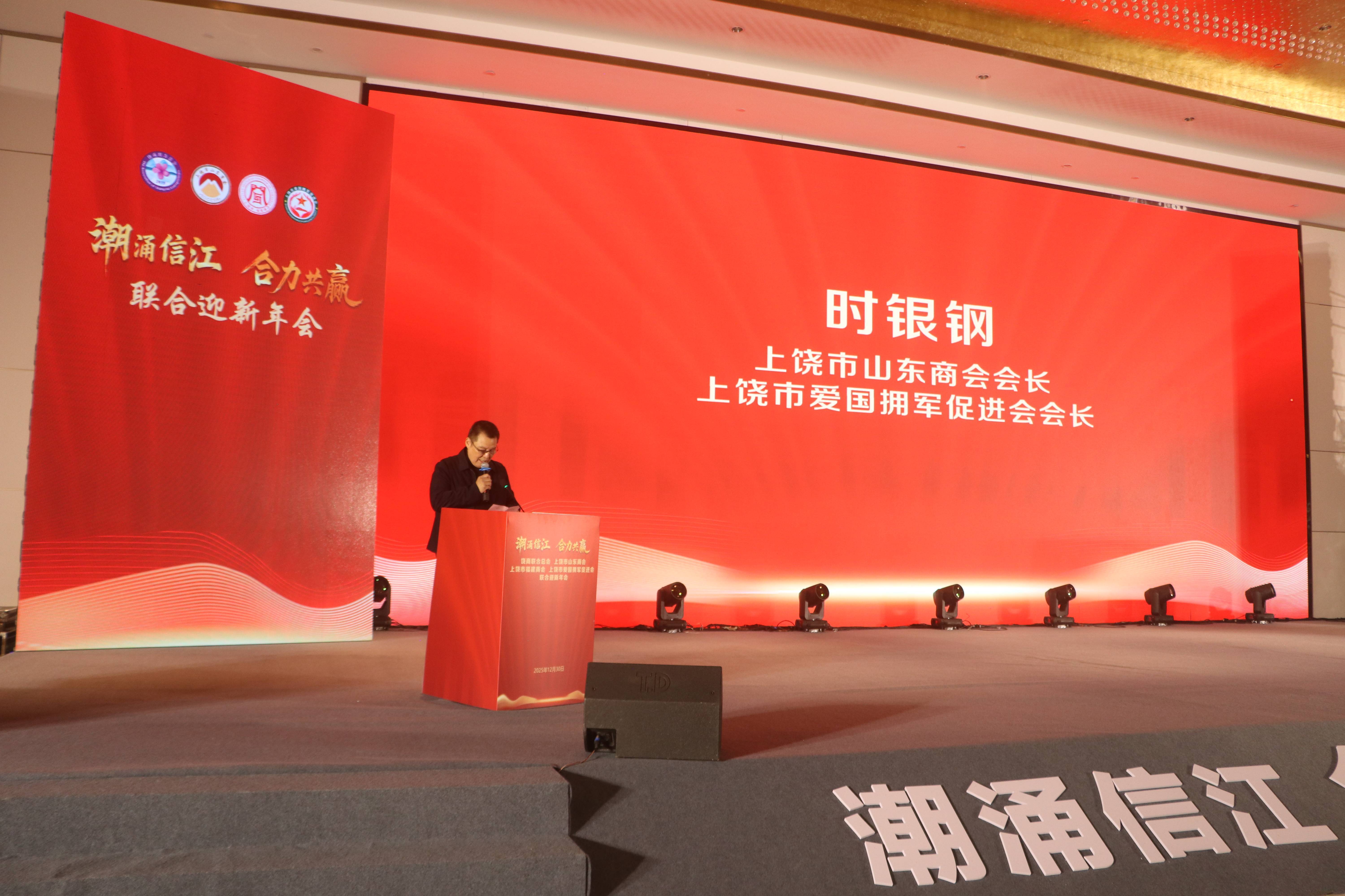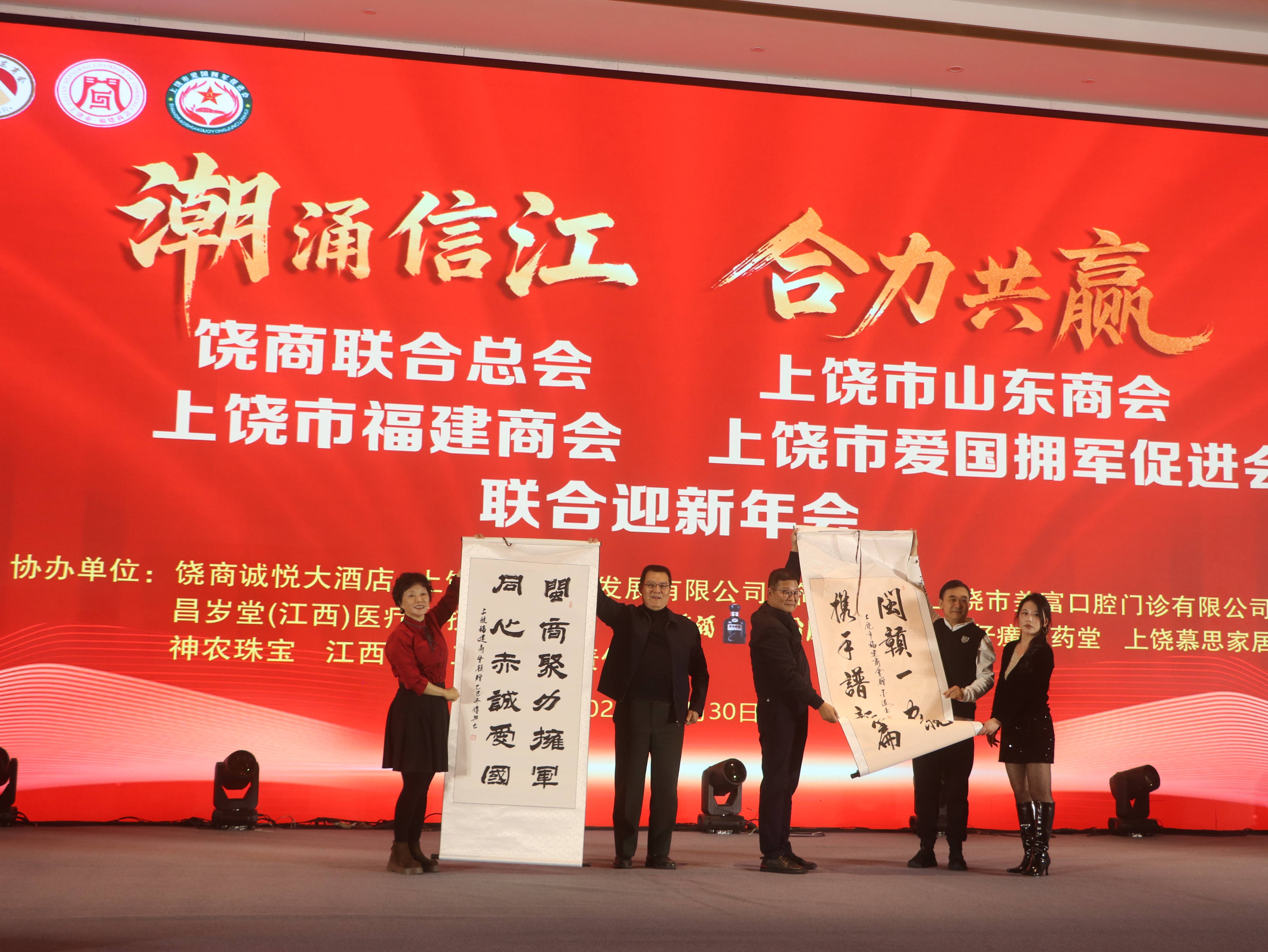 年会上,上饶市福建商会会长林新春,上饶市山东商会、上饶市爱国拥军促进会会长时银钢,饶商联合总会会长陈新分别致辞,回顾过去一年的合作与成果,展望新一年的发展与愿景。随后,各商会会长互赠纪念礼品,并举杯共祝,寄寓携手前行、合力共赢的美好期许。
